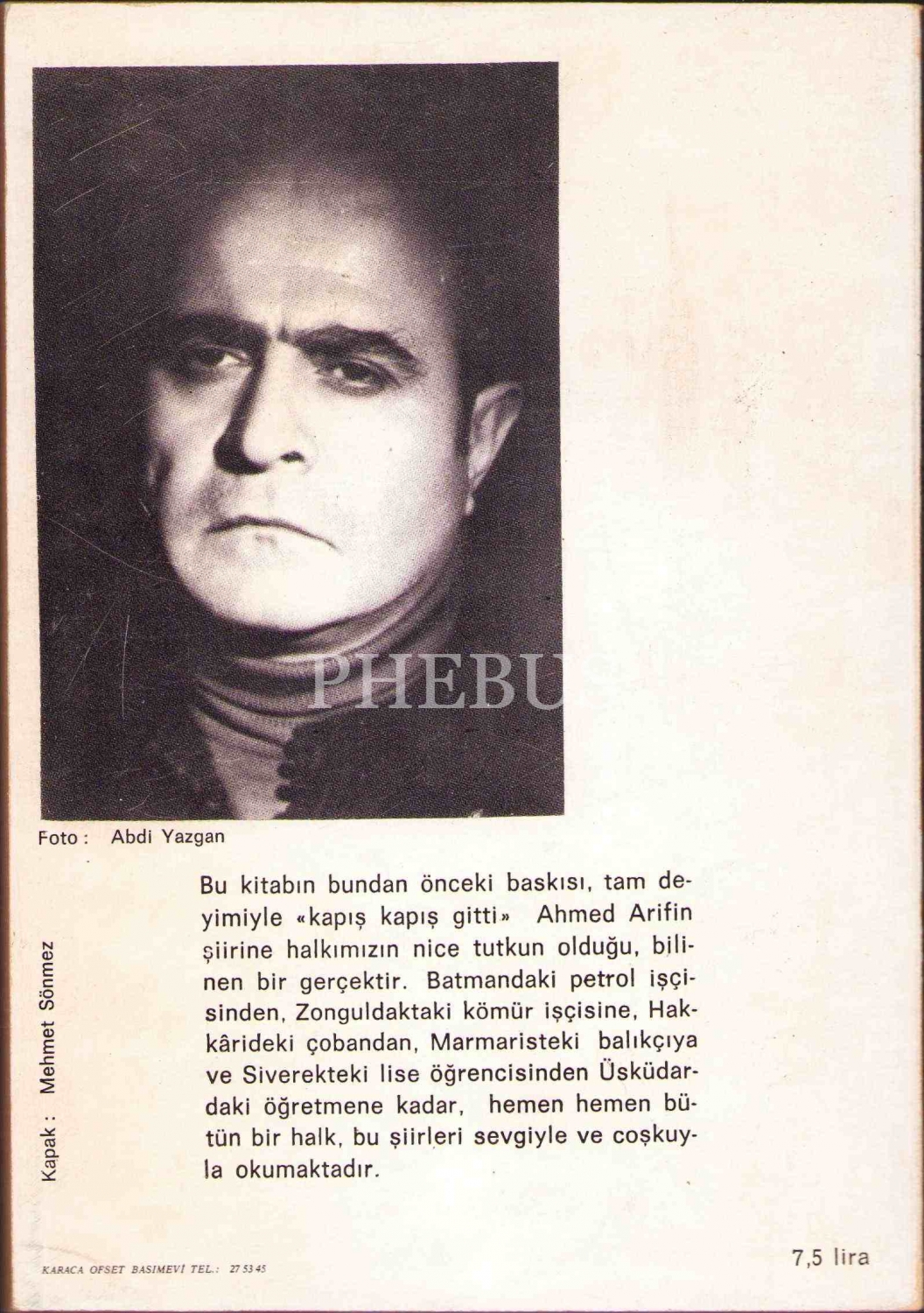 Kapak ve ilk sayfalarda yırtık mevcut. 1927'de Diyarbakır'da doğan Ahmed Arif, Diyarbakır Lisesi'nden mezun olunca Ankara Üniversitesi Dil ve Tarih-Coğrafya Fakültesi Felsefe Bölümü’nde okudu. İlk şiirini 1942 yılında Taşpınar dergisinde yayınladı. Gazete ve dergilerde yayınlanan düz yazıları ile 1950 kuşağı yazar ve şairlerde derin izler bıraktı. 1991 yılında vefat.