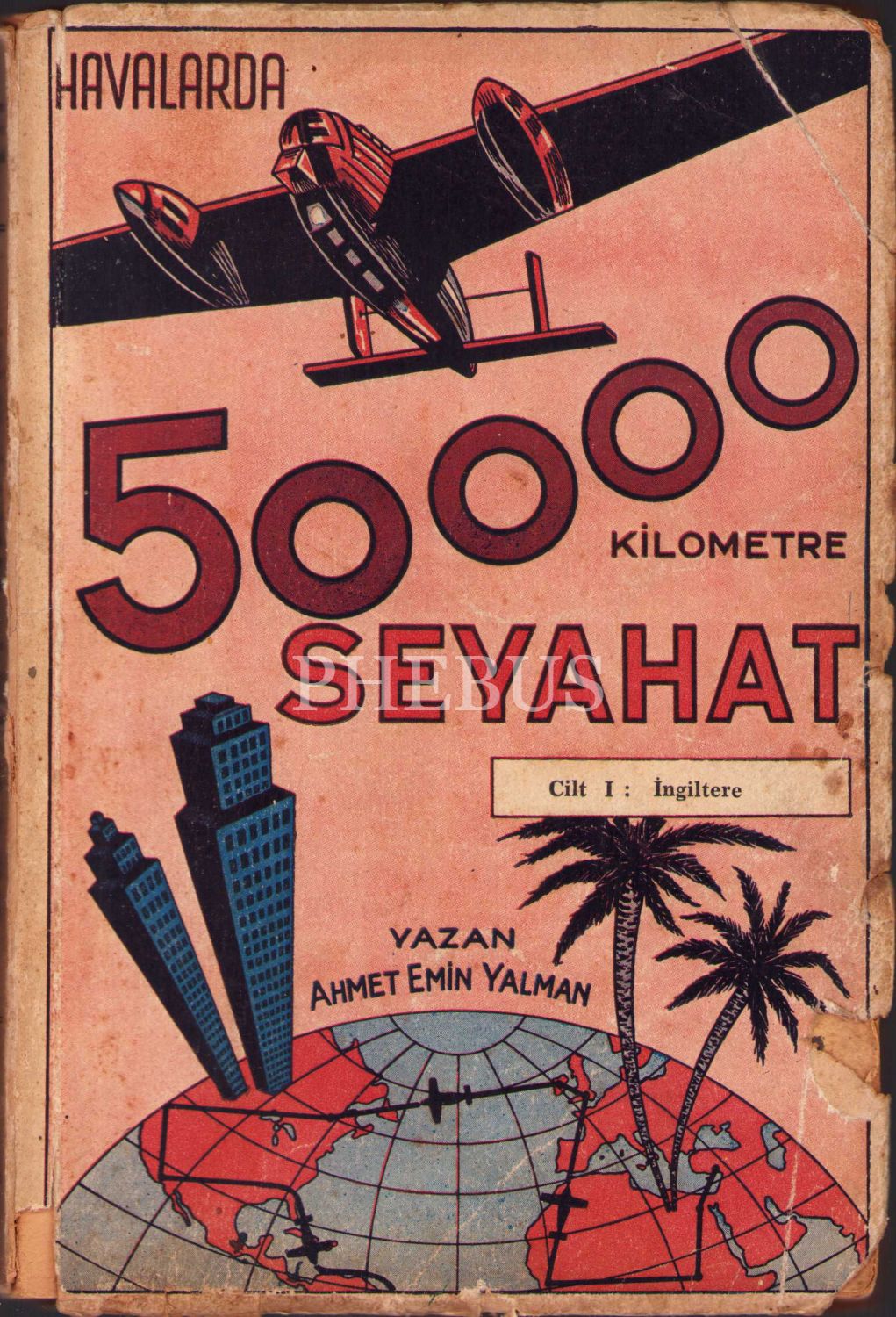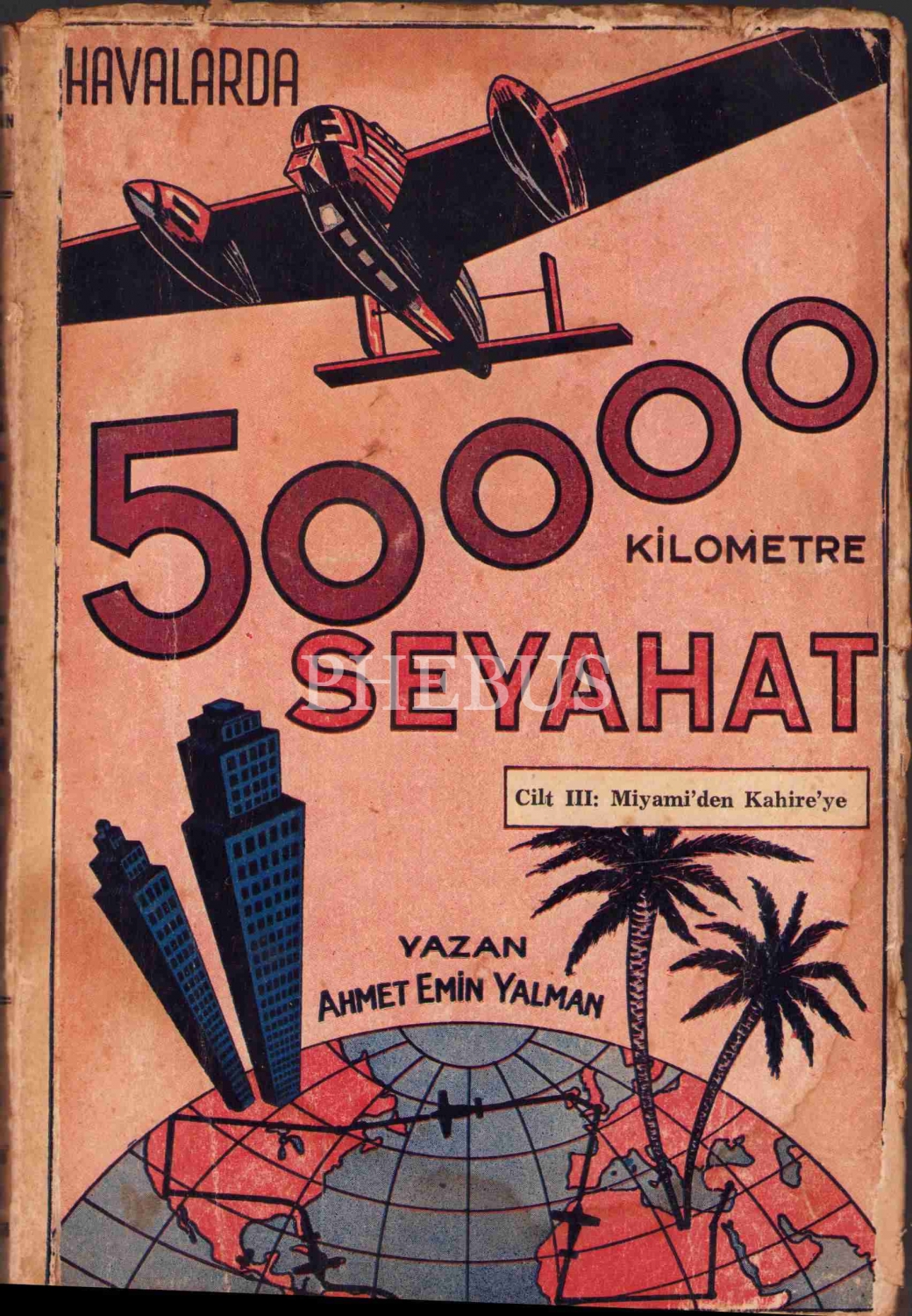 Havalarda 50000 Kilometre Seyahat, Ahmet Emin Yalman, 3 Cilt Takım, İlk Baskı, Vatan Matbaası, 1943, 306+312+232 sayfa, 14x21 cm