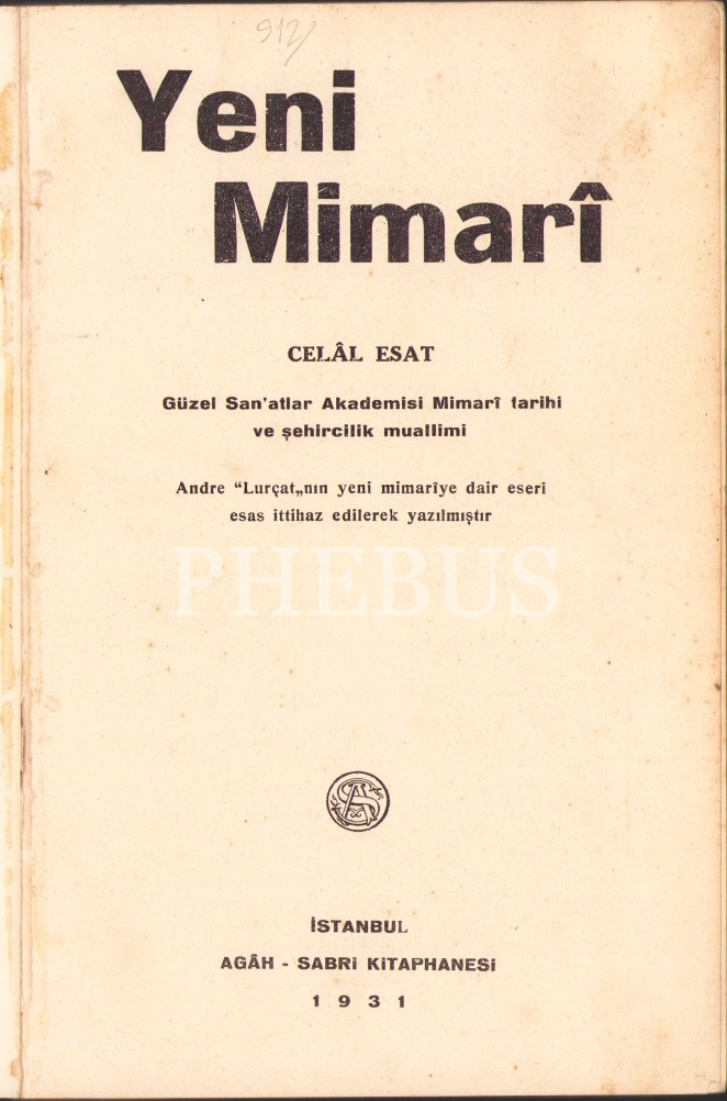 Yeni Mimari, Celal Esat |Arseven], Agah-Sabri Kitaphanesi, İlk Baskı, 1931, 64 sayfa, 16x24 cm