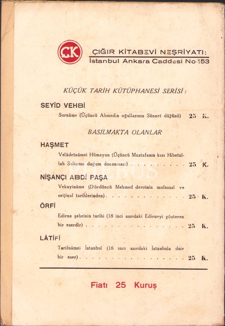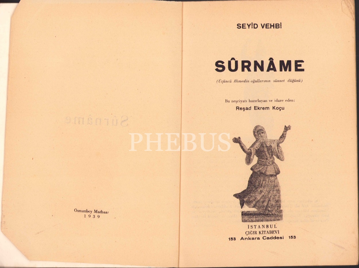 Surname, Seyid Vehbi, Hazırlayan: Reşad Ekrem Koçu, İlk Baskı, Çığır Kitabevi, Osmanbey Matbaası, 1939, 37 sayfa, 16x24 cm