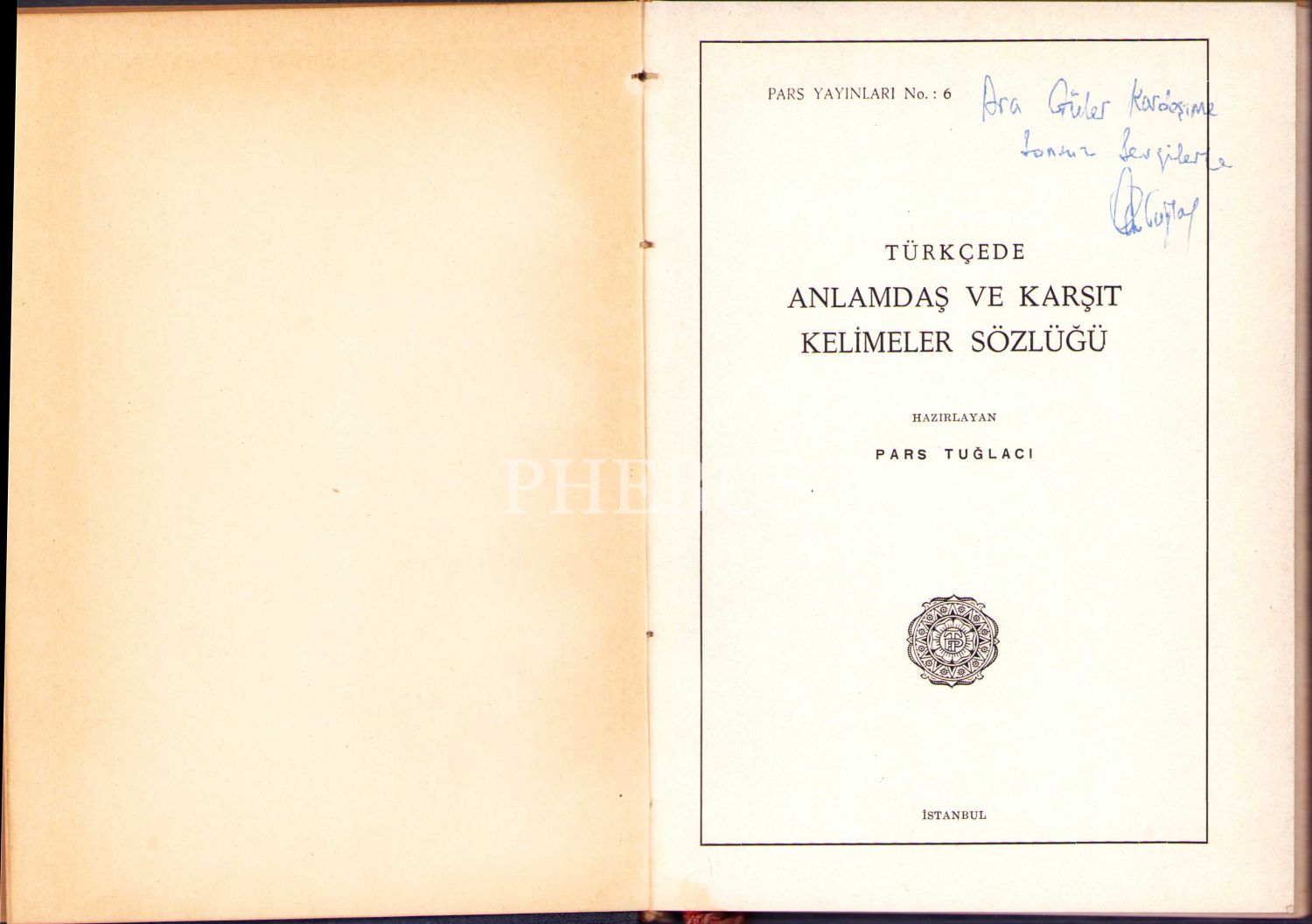 İthaf, "Ara Güler kardeşime sonsuz sevgilerimle" şeklindedir.
