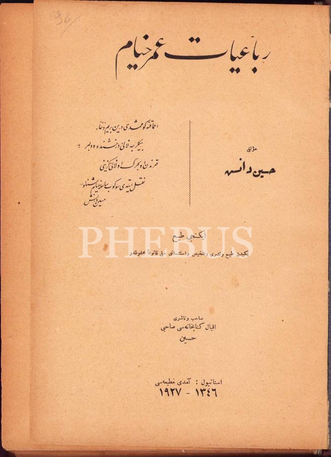 Osmanlıca Rübaiyat-ı Ömer Hayyam, Hazırlayan Hüseyin Daniş, Amedi Matbaası, 1927, 320 sayfa
