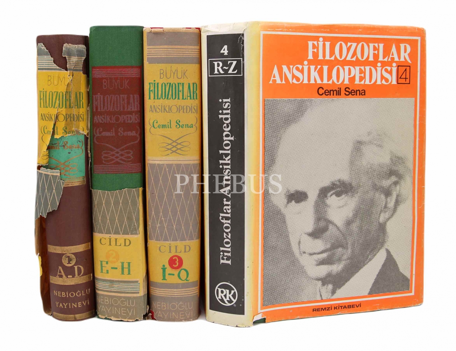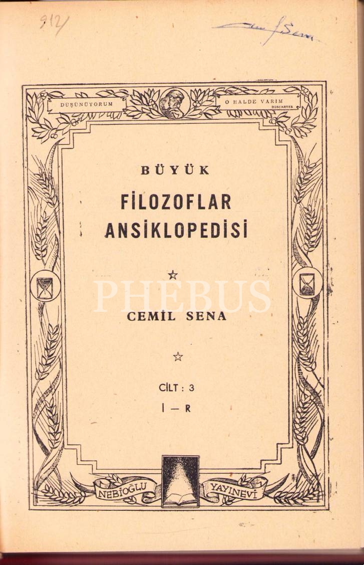 Büyük Filozoflar Ansiklopedisi, Cemil Sena Ongun, 4 Cild Takım, 3. Cildi Yazarından İmzalı, Nebioğlu Yayınevi/Remzi Kitabevi, 642+535+684+590 sayfa, 17x25 cm