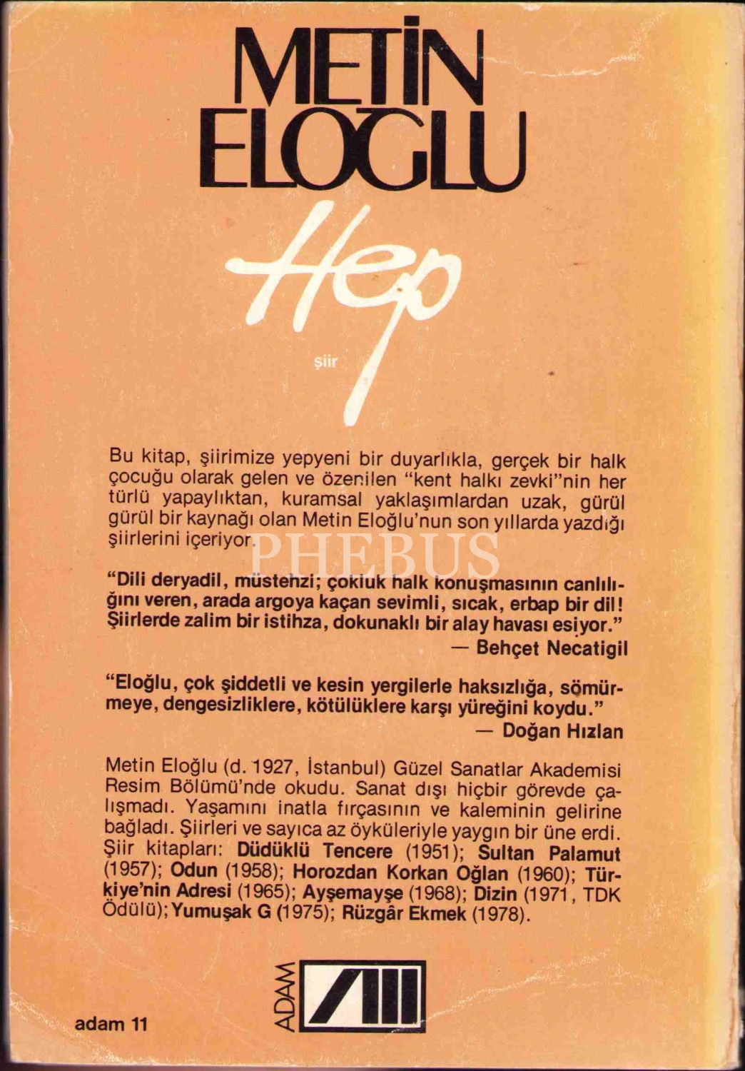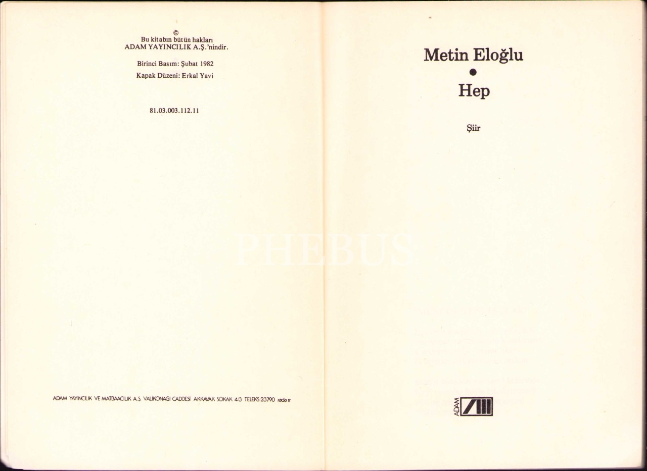 Hep -Şiirler-, Metin Eloğlu, İlk Baskı, Adam Yayınları, 1982, 71 sayfa