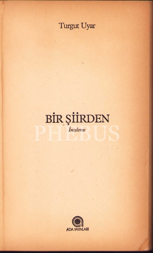 Bir Şiirden, Turgut Uyar, İlk Baskı, Ada Yayınları, 1983, 154 sayfa