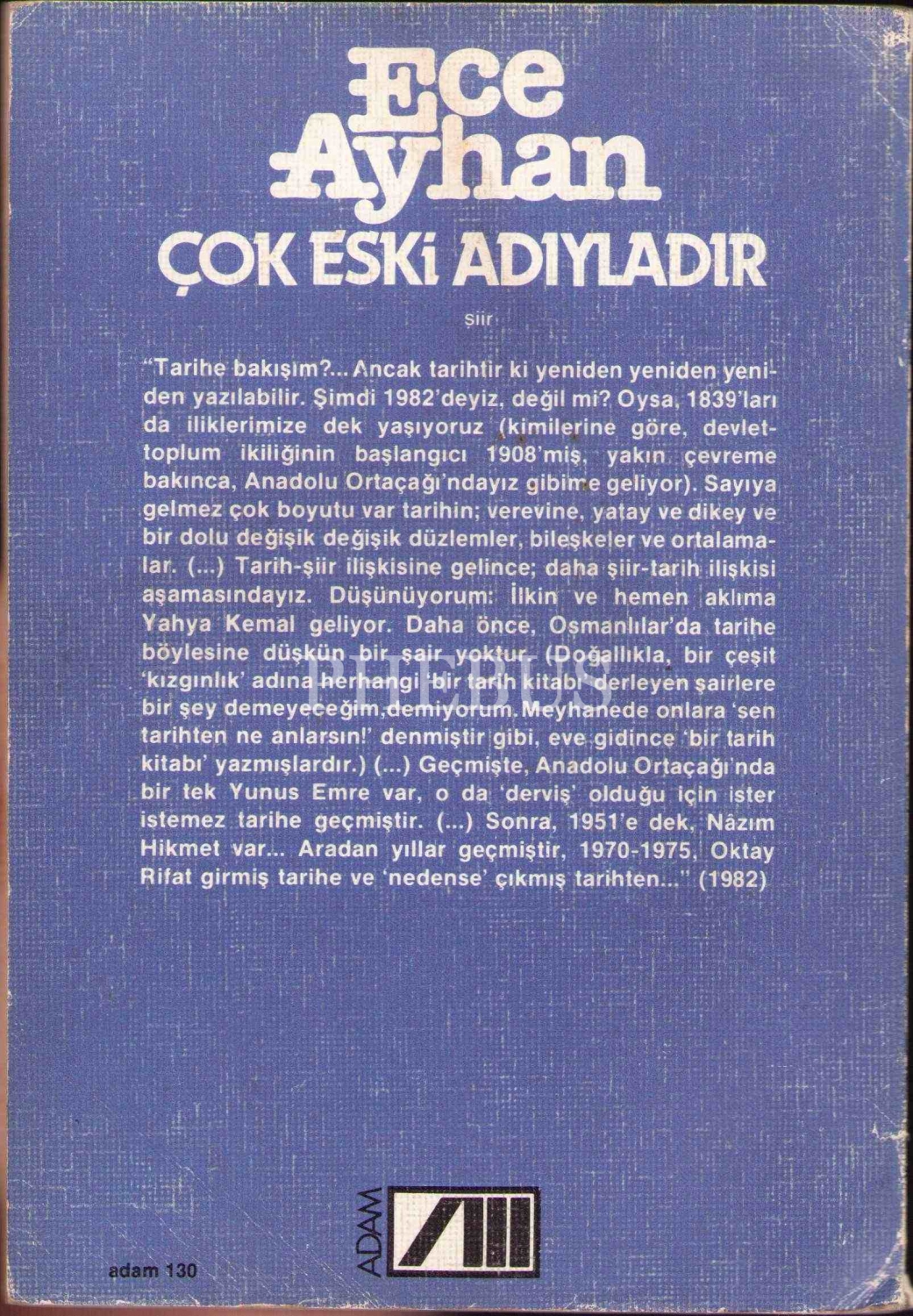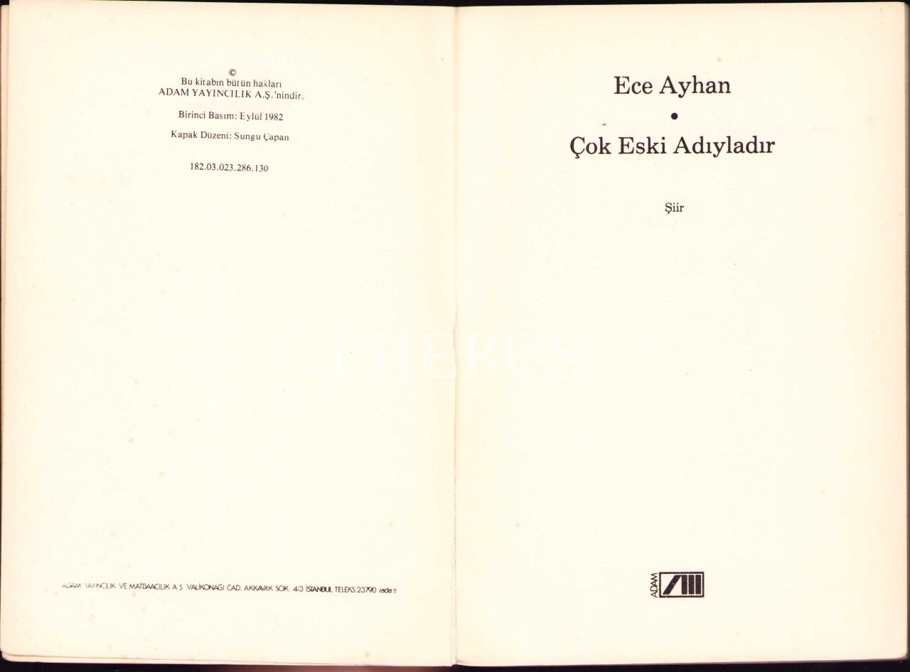 Çok Eski Adıyladır, Ece Ayhan, İlk Baskı, Adam Yayınları, 1982, 62 sayfa