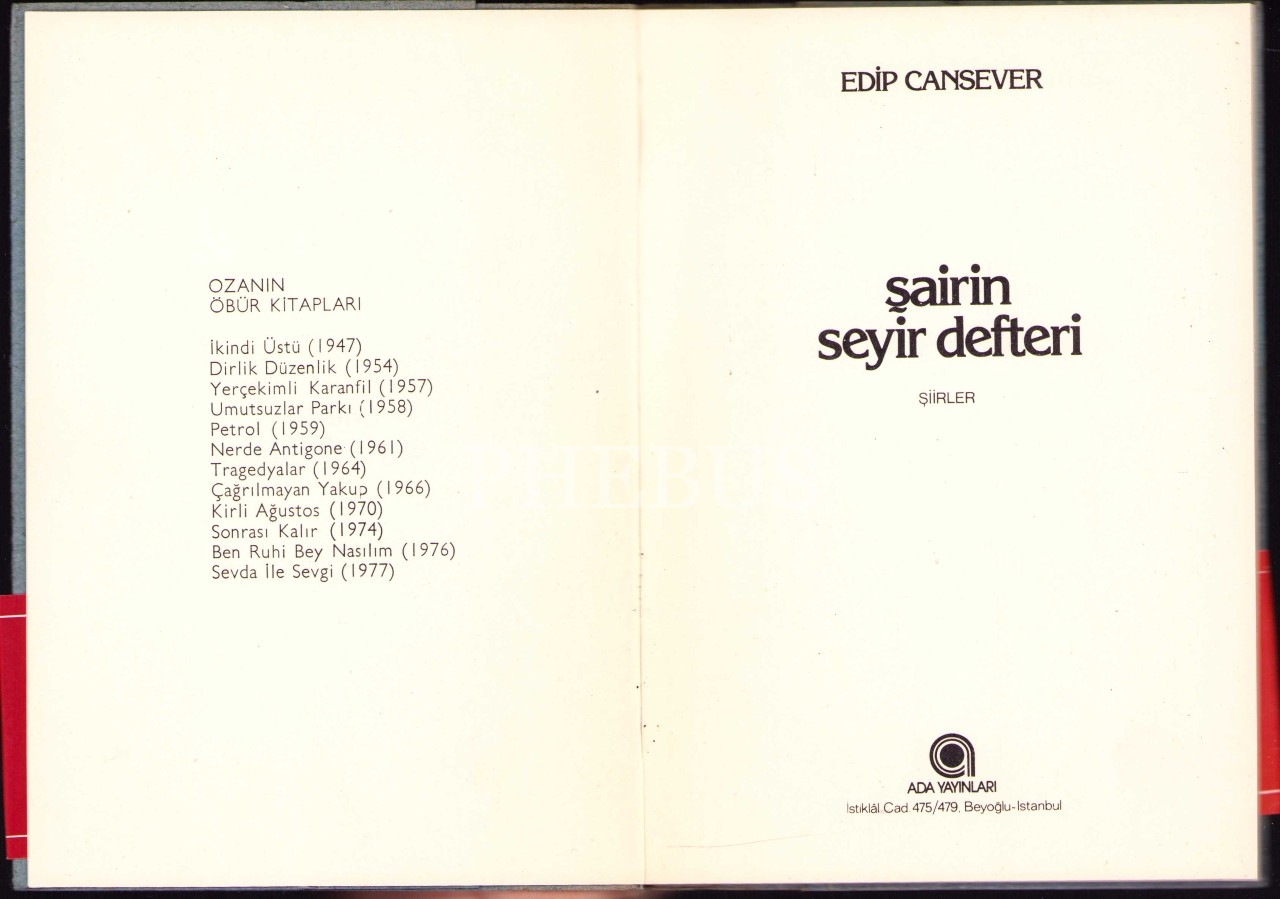 Şairin Seyir Defteri -Şiirler-, Edip Cansever, Numaralı Baskı 355 Numara, 1980, 50 sayfa