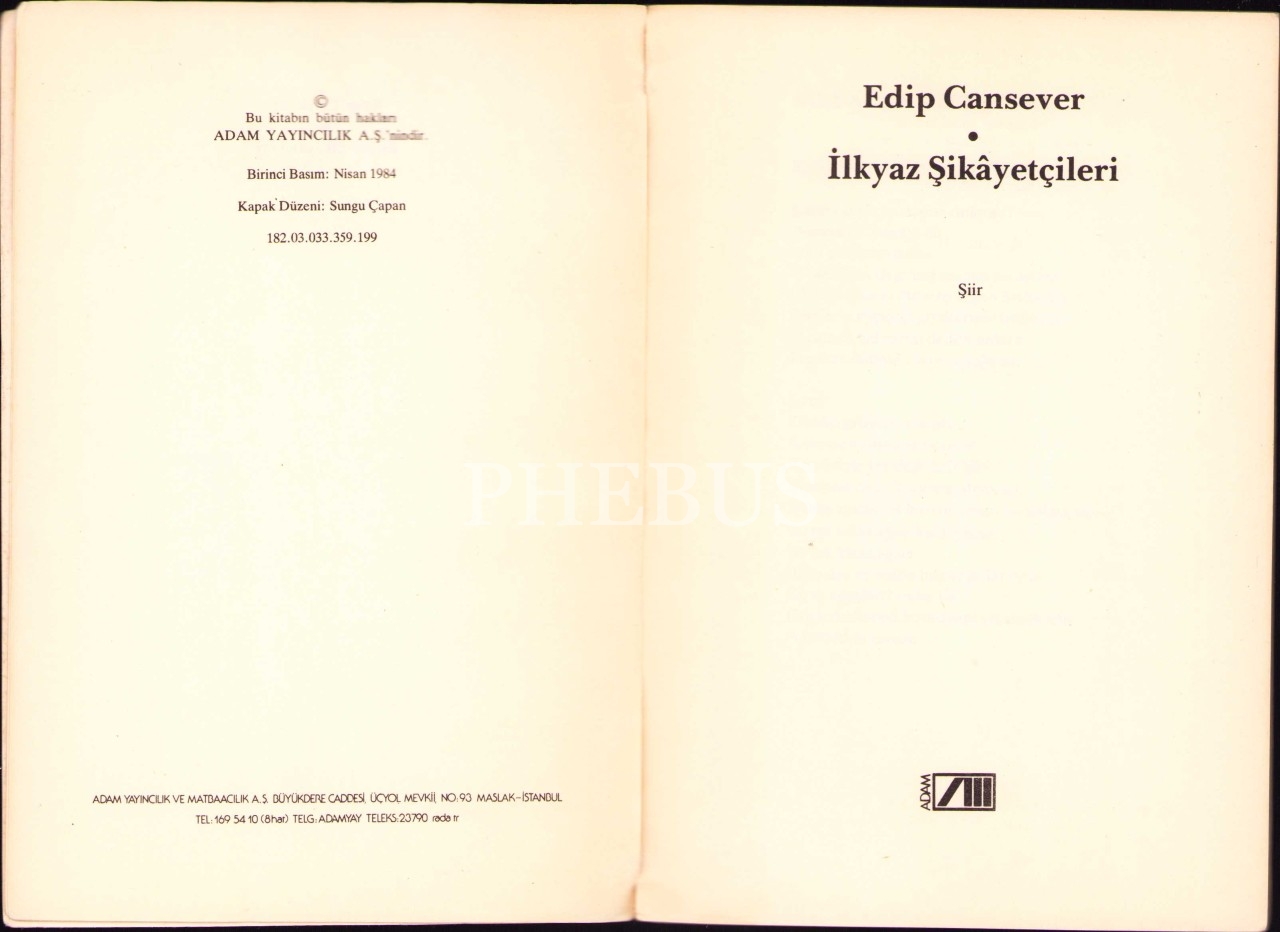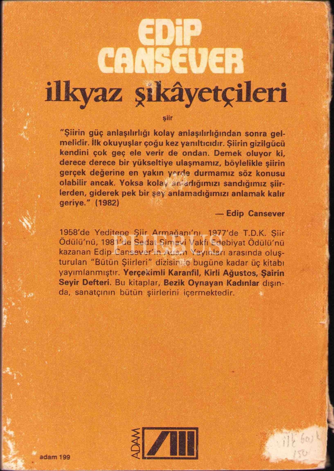 İlkyaz Şikayetçileri -Şiirler-, Edip Cansever, İlk Baskı, Adam Yayınları, 1984, 71 sayfa