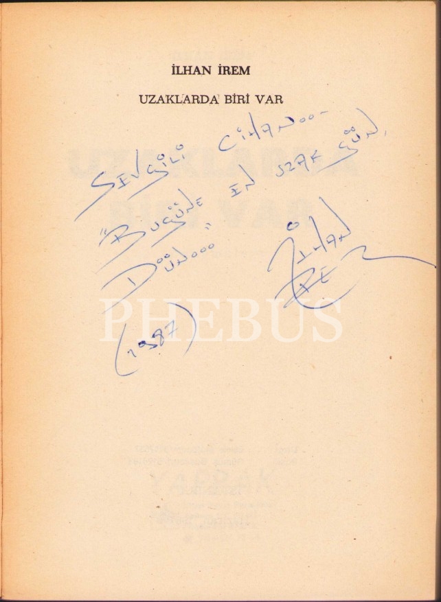 İlhan İrem'den İmzalı ve İthaflı "Uzaklarda Biri Var -Şiirler-", İlk Baskı, Yaprak Yayınları, 1987, 125 sayfa