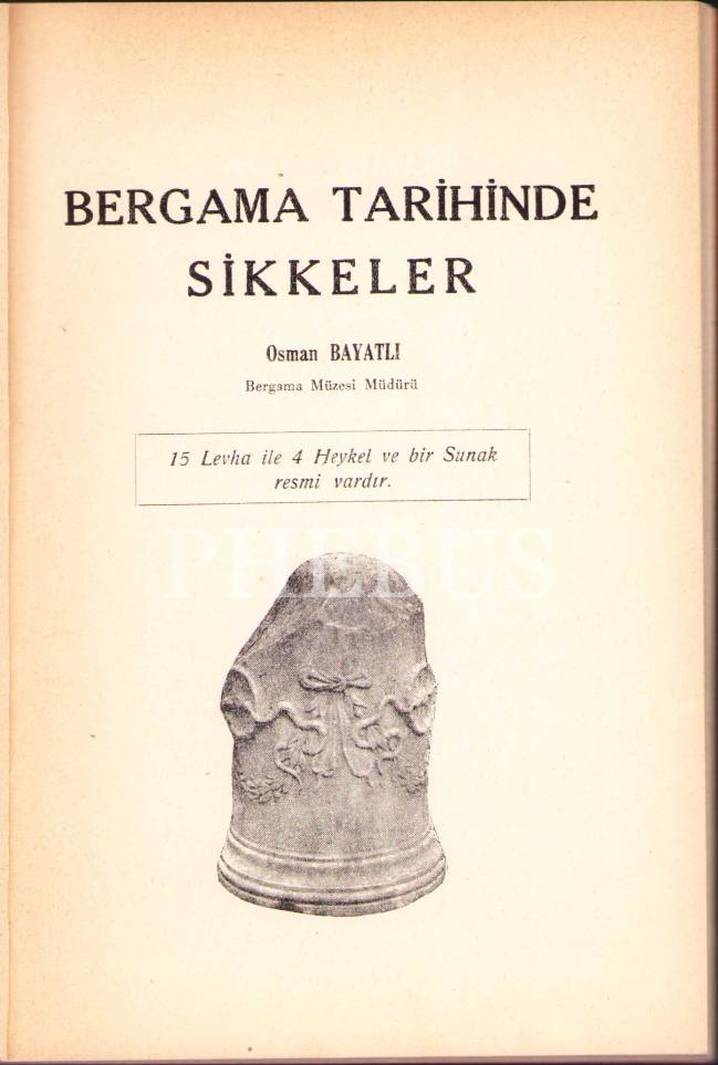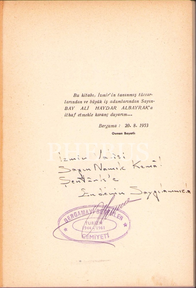 Yazarı Osman Bayatlı'dan İthaflı ve İmzalı "Bergama Tarihinde Sikkeler", İhsan Gümüşayak Matbaası, İzmir 1953, 71 sayfa, 14x20 cm