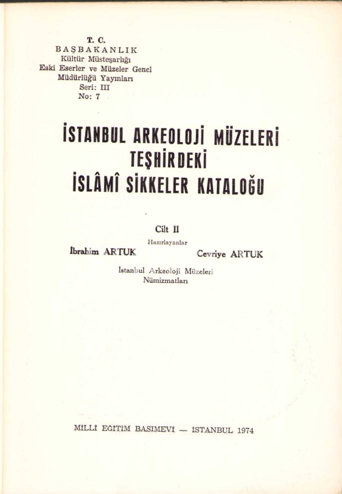 İstanbul Arkeoloji Müzeleri Teşhirdeki İslâmî Sikkeler Kataloğu [2 Cilt], İbrahim Artuk-Cevriye Artuk, Milli Eğitim Basımevi, İstanbul 1971 ve 1974, 972 sayfa, 17x24 cm
