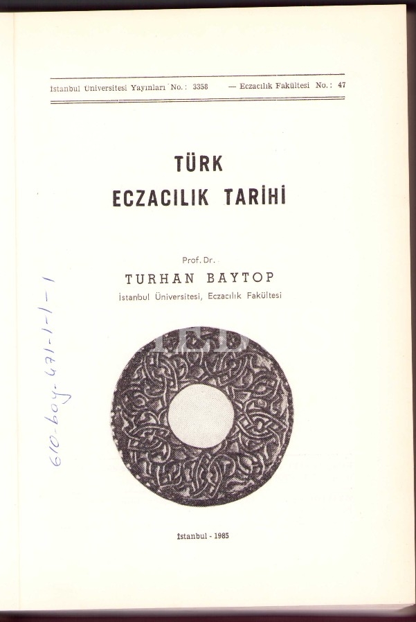 Yazarı Turhan Baytop'tan İmzalı ve İthaflı "Türk Eczacılık Tarihi", İstanbul Üniversitesi Yayınları, İstanbul 1985, 472 sayfa, 18x25 cm