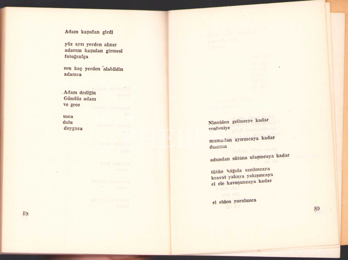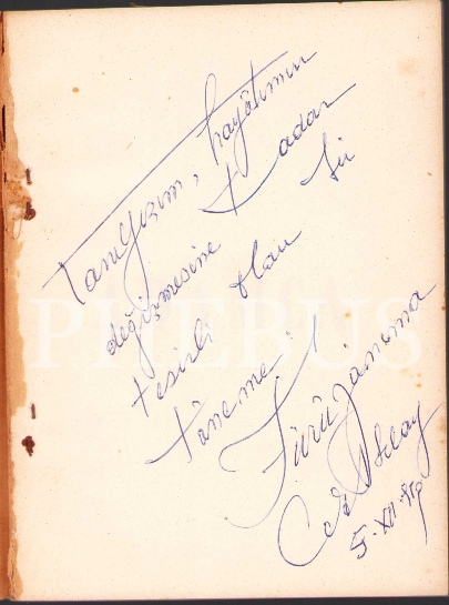 İthaf, "Tanıyışım, hayatımın değişmesine kadar tesirli olan bir taneme Fürûzanıma (?) C. Sılay 5.XII.959" şeklindedir.