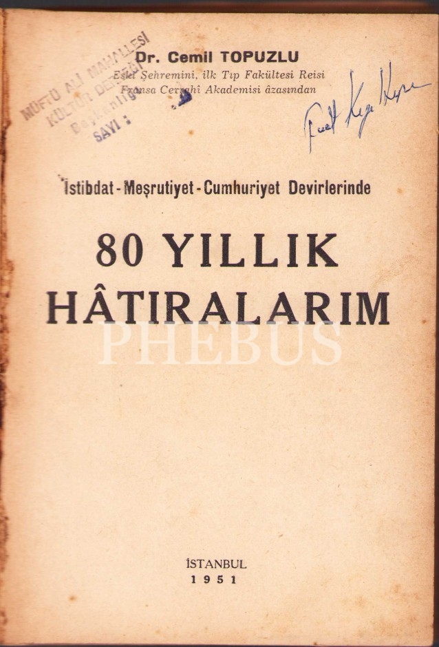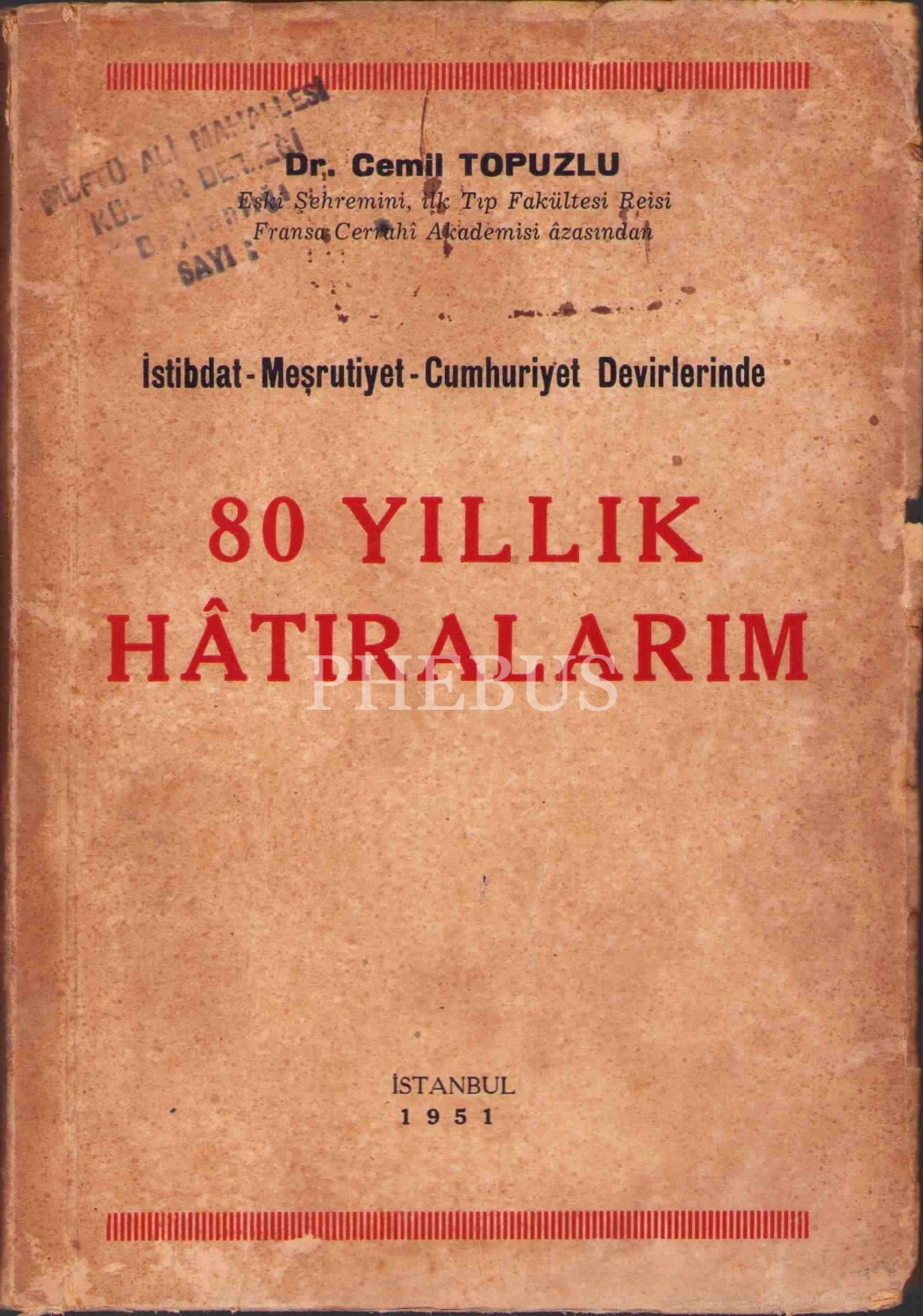 İstibdat-Meşrutiyet-Cumhuriyet Devirlerinde 80 Yıllık Hâtıralarım, Cemil Topuzlu, Güven Basım ve Yayınevi, İstanbul 1951, 294 sayfa, 14x20 cm