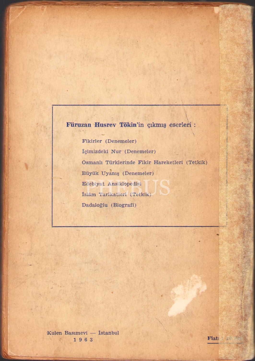 İthaf, "Saygı değer Pars Tuğlacı'ya hürmetlerimle 30.8.972" şeklindedir.