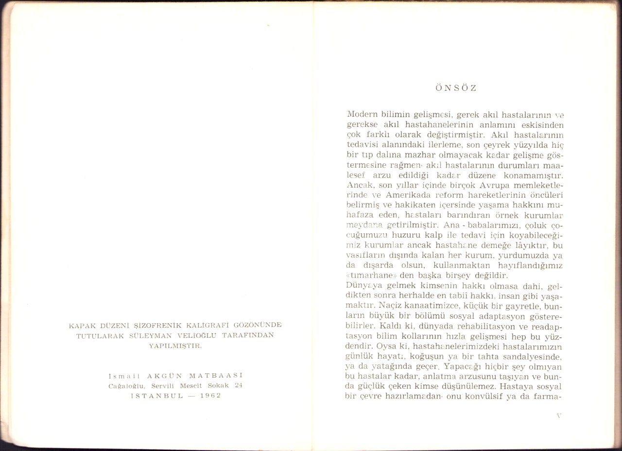 Bir Şizofren Hastanın Sanat Ürünleri, Kâzım Dağyolu-Süleyman Velioğlu, İsmail Akgün Matbaası, İstanbul 1962, 117 sayfa, 12x17 cm