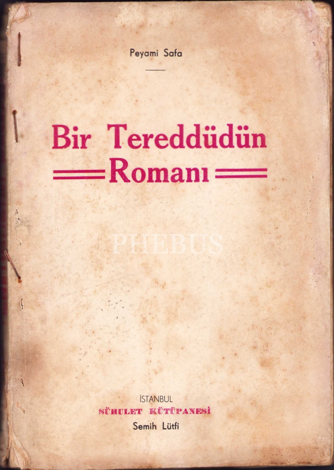 Bir Tereddüdün Romanı, Peyami Safa, Sühulet Kütüphanesi, İstanbul, 14x20 cm, haliyle