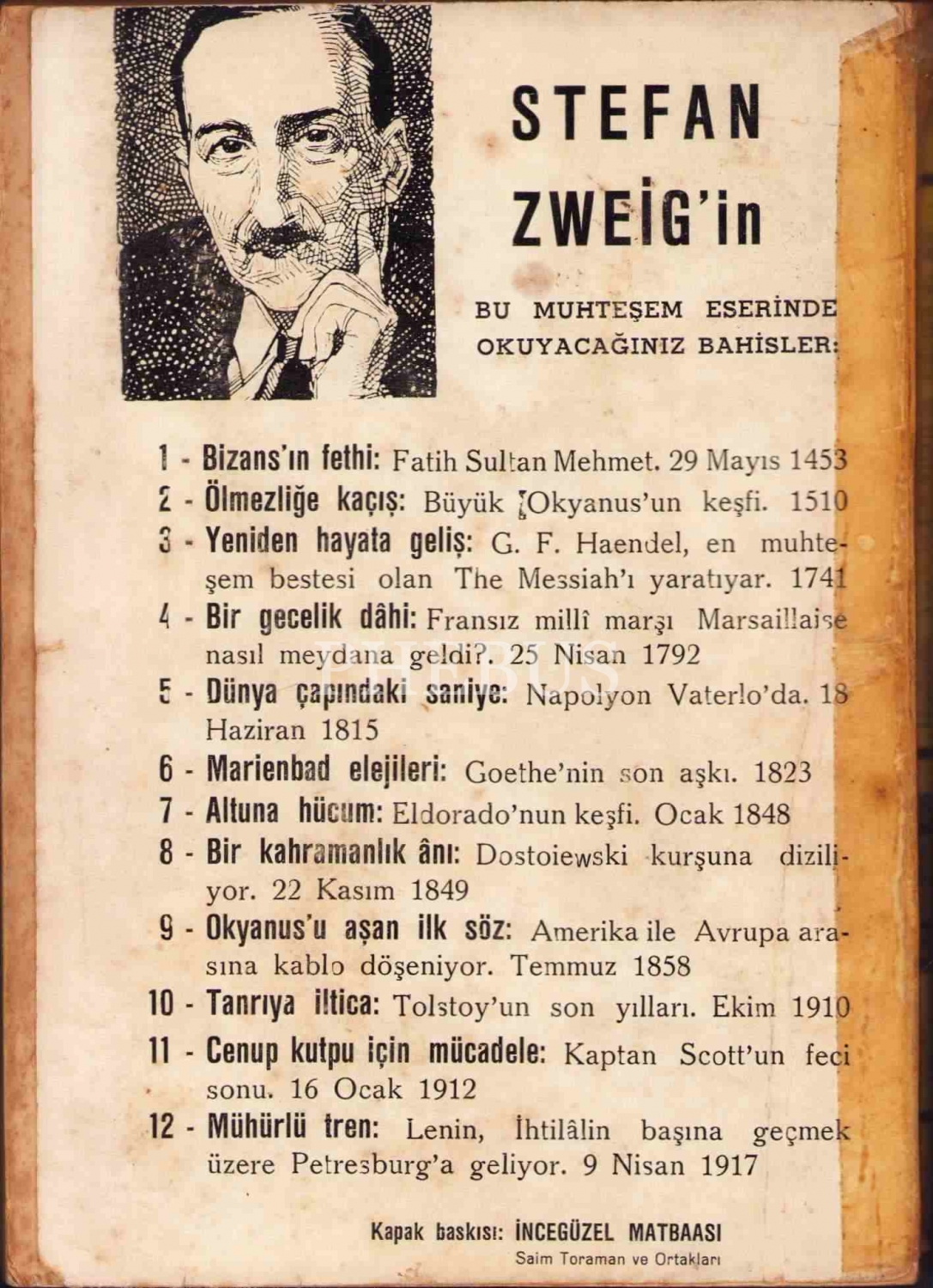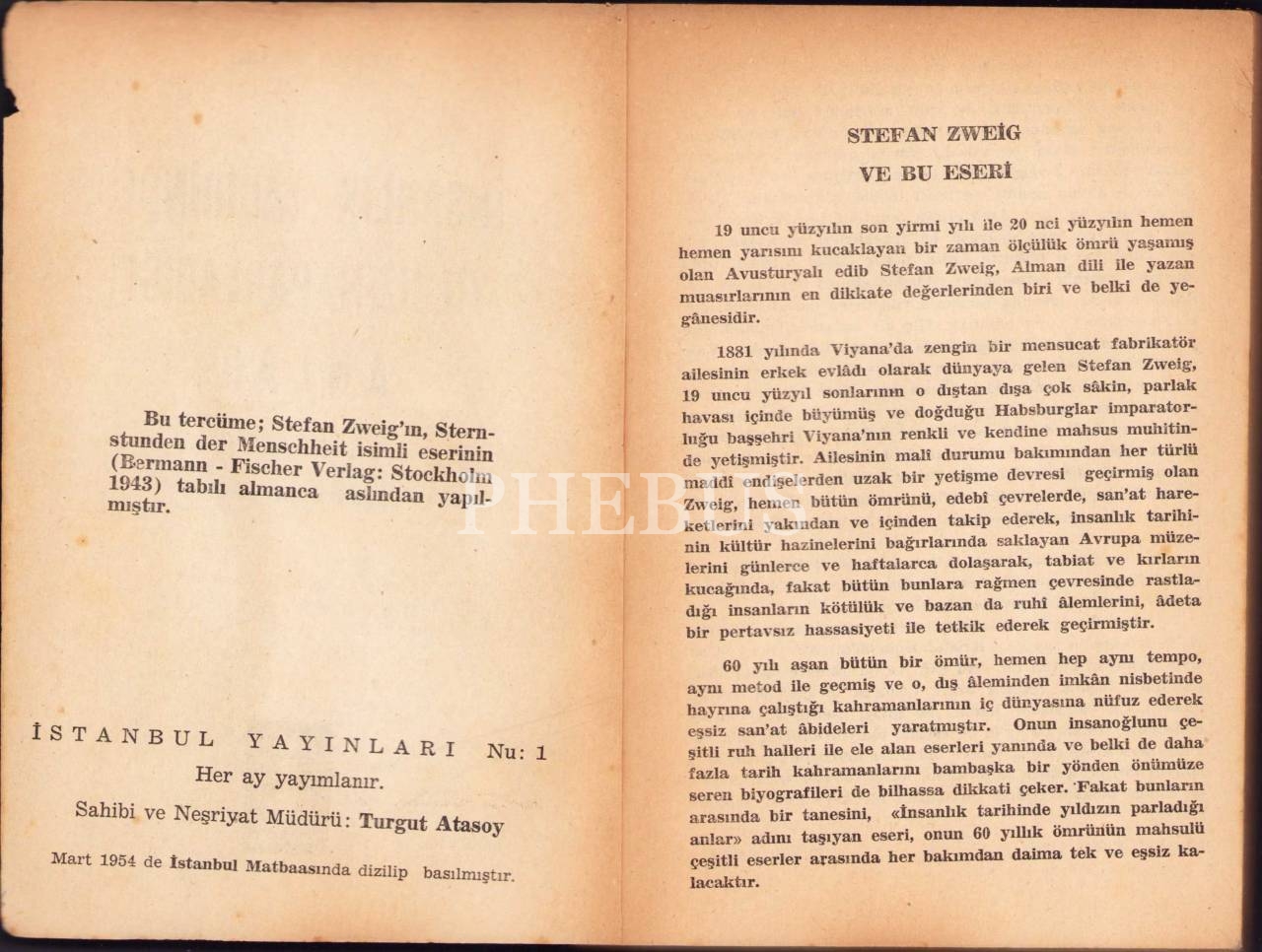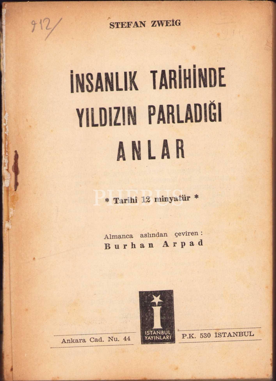 İnsanlık Tarihinde Yıldızın Parladığı Anlar, Stefan Zweig, Çev. Burhan Arpad, İstanbul Yayınları, 1954, 295 sayfa, 12x16 cm, yorgun