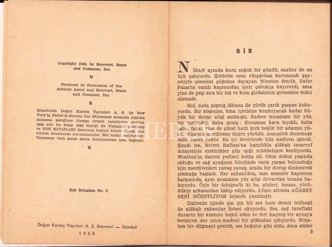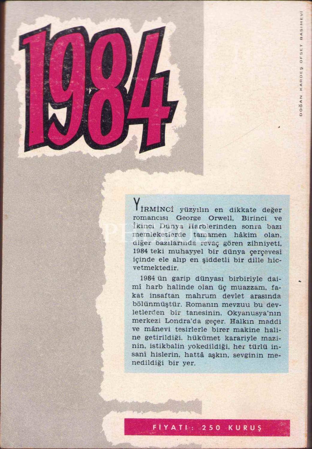 1984, George Orwell, Tercüme V. Turhan ve S. Tonguç, Doğan Kardeş Yayınları, 1958, 247 sayfa