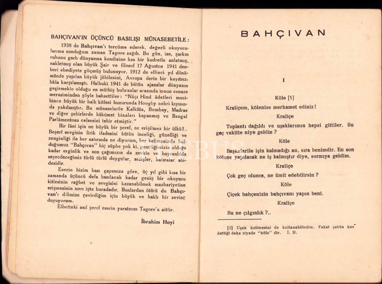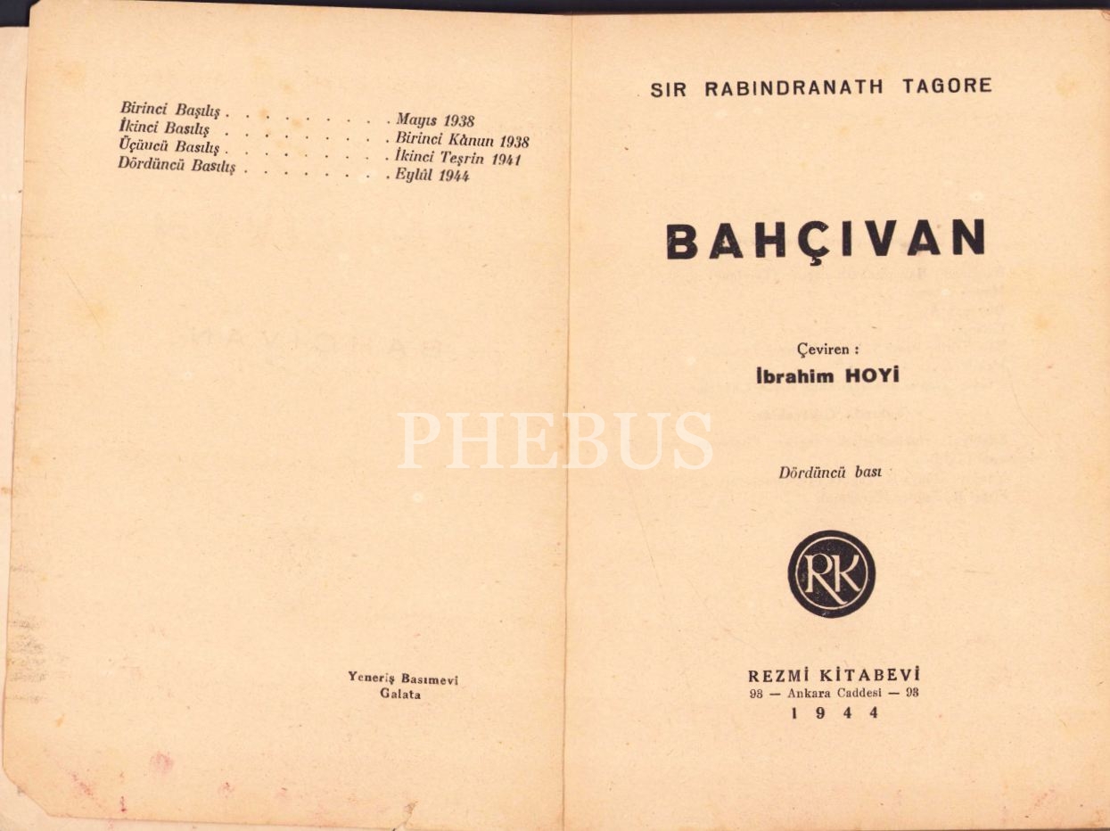 Bahçıvan, Rabindranath Tagore, Çeviren İbrahim Hoyi, Remzi Kitabevi, 1944, 117 sayfa