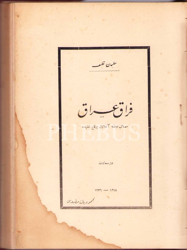 İkinci Kitap: Osmanlıca Firak-ı Irak, Süleyman Nazif, 1918/ Üçüncü Kitap: Osmanlıca Sarıkamış İhtiva Manevrası ve Meydan Muharebesi, Şerif Köprülü Necm-i İstiklal Matbaası, 1338, 157+63+200 sayfa