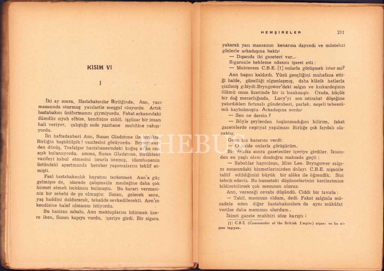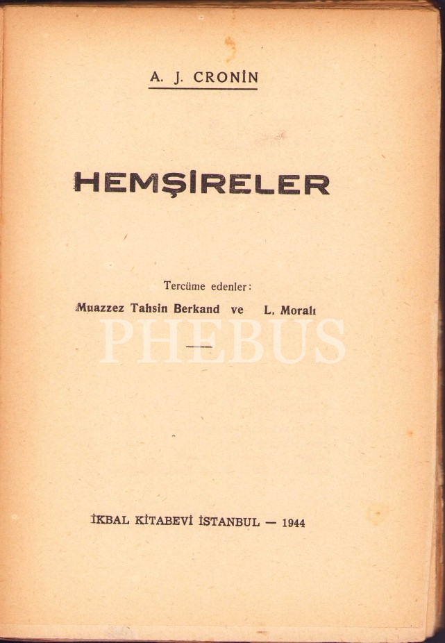 Hemşireler, A.J. Cronin, Çevirenler: Muazzez Tahsin Berkand ve L. Moralı, İkbal Kitabevi, İstanbul 1944, 243 sayfa
