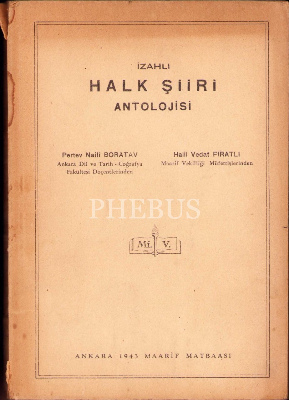 İzahlı Halk Şiiri Antolojisi, Pertev Naili Boratav - Halil Vedat Fıratlı, Maarif Matbaası, Ankara 1943, 293 sayfa, 17x24 cm