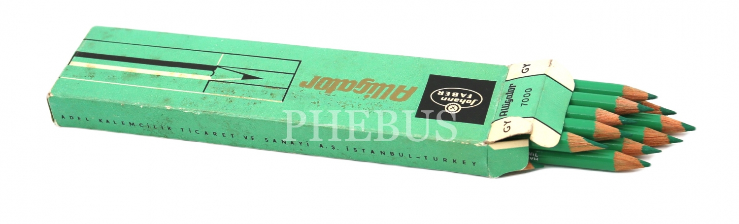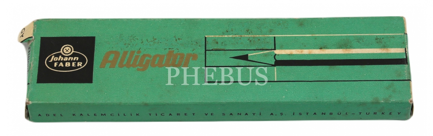 Johann Faber Alligator kutusunda yeşil renk kurşun kalem seti, kutu kapağında kopuk mevcut, 18x4x2 cm