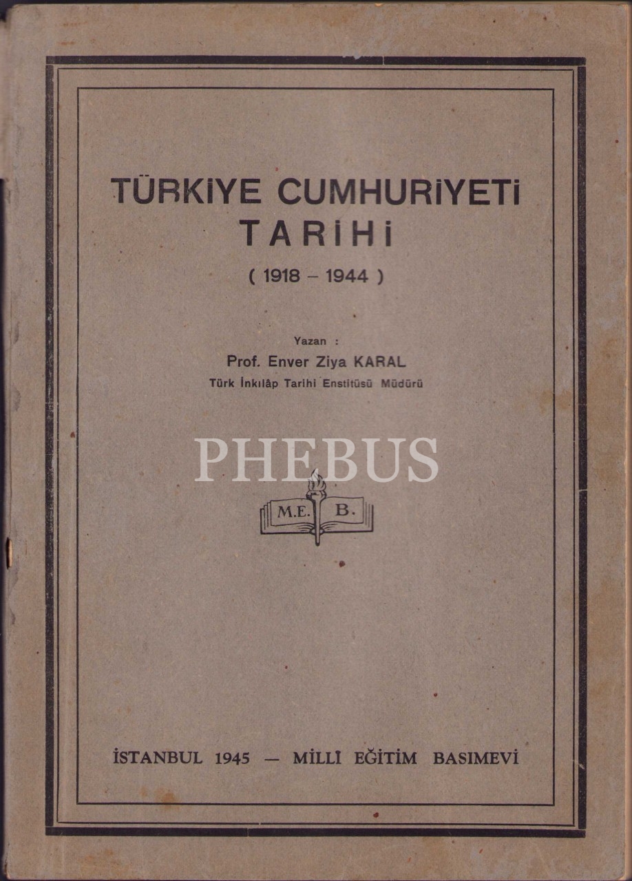 Türkiye Cumhuriyeti Tarihi (1918-1944), Prof. Enver Ziya Karal, Milli Eğitim Basımevi, İstanbul 1945, 193 sayfa, 16x23 cm, sırtı haliyle