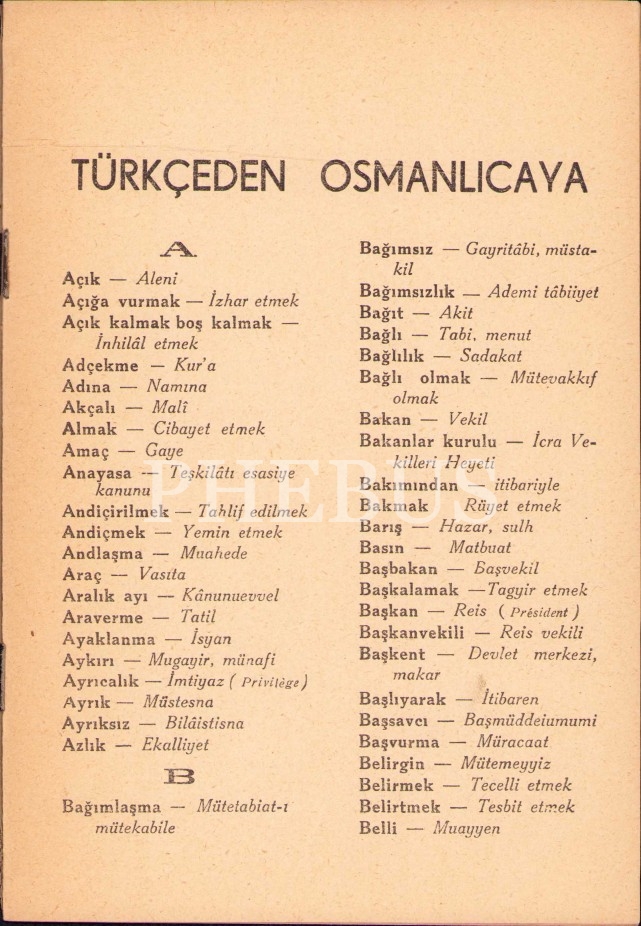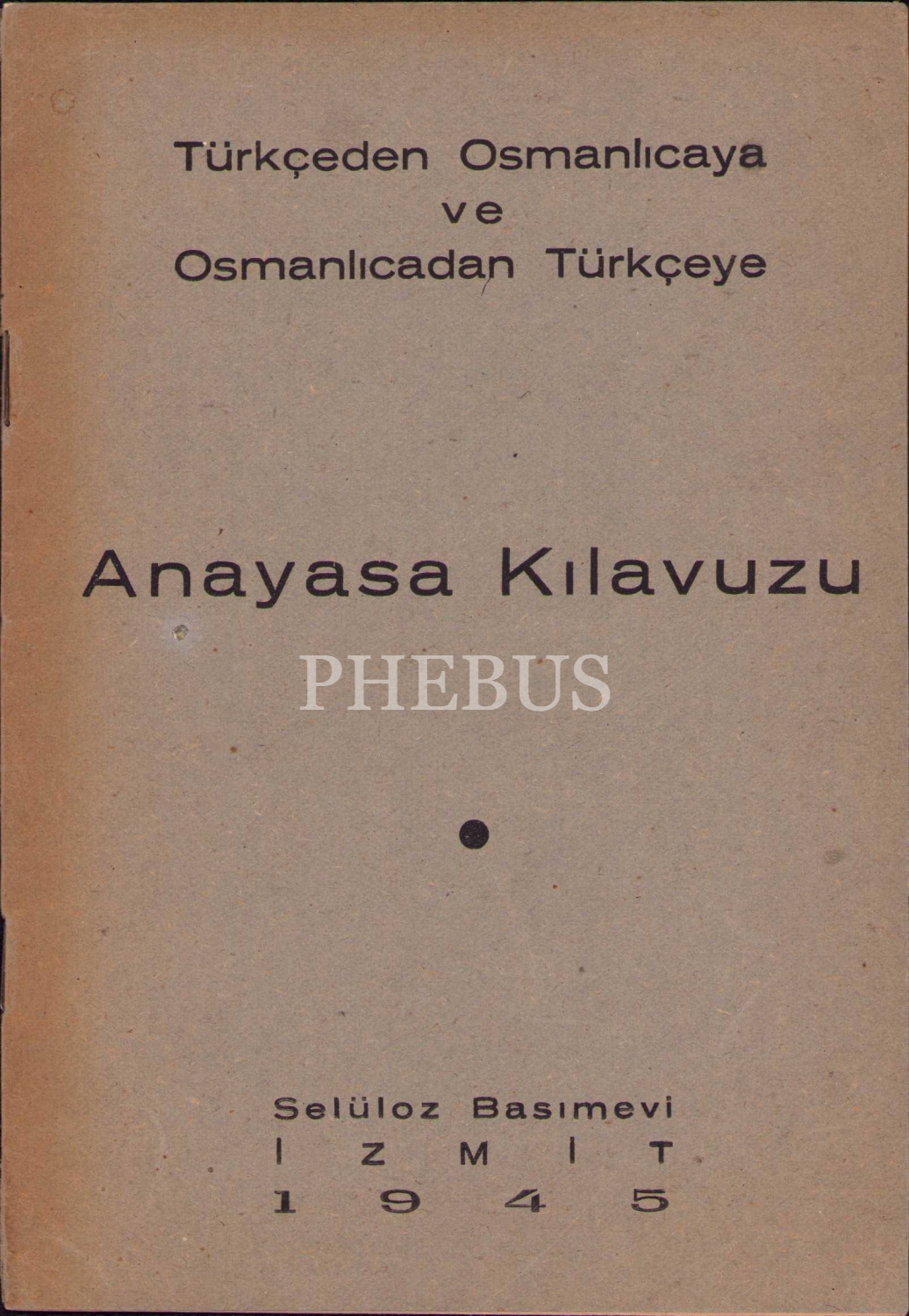 Türkçeden Osmanlıcaya ve Osmanlıcadan Türkçeye Anayasa Kılavuzu, Selüloz Basımevi, İzmit 1945, 15 sayfa