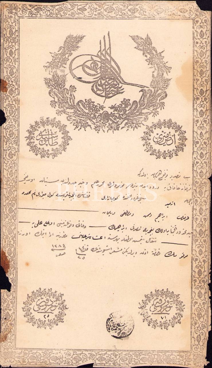 Osmanlıca tapu senedi, İzmir 1284, 18x31 cm