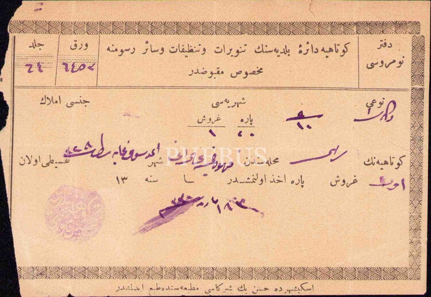 Osmanlıca Kütahya Belediyesi aydınlatma ve temizlik vergisi makbuzu, 1328, 10x15 cm