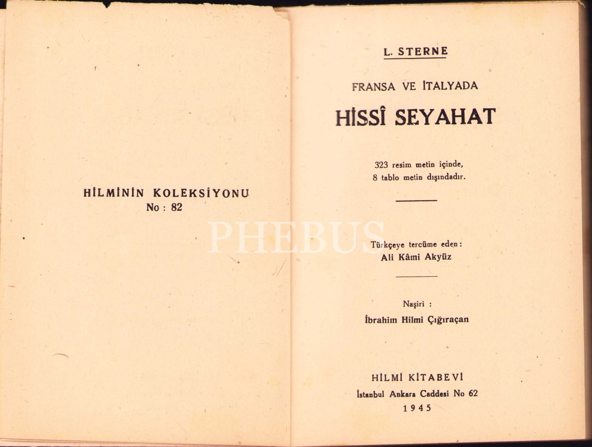 Hissi Seyahat, L. Sterne, Çeviren: Ali Kami Akyüz, Hilmi Kitabevi, 1945, sayfaları açılmamış