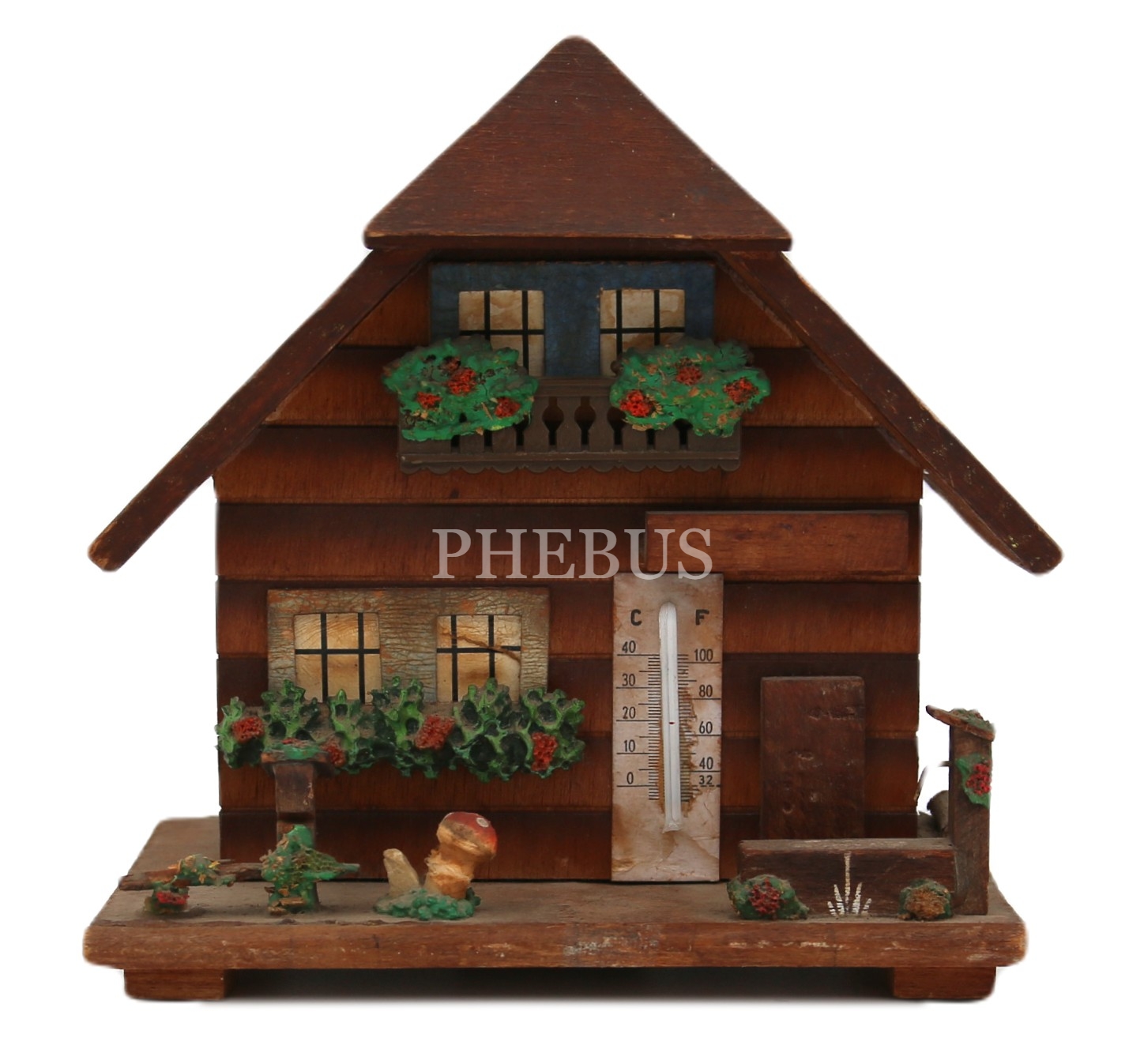 Ev formunda, termometreli ve laternalı kumbara, 13x12x6 cm, termometresi çalışmamakta