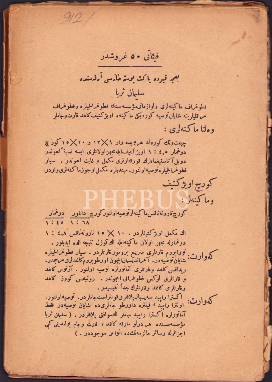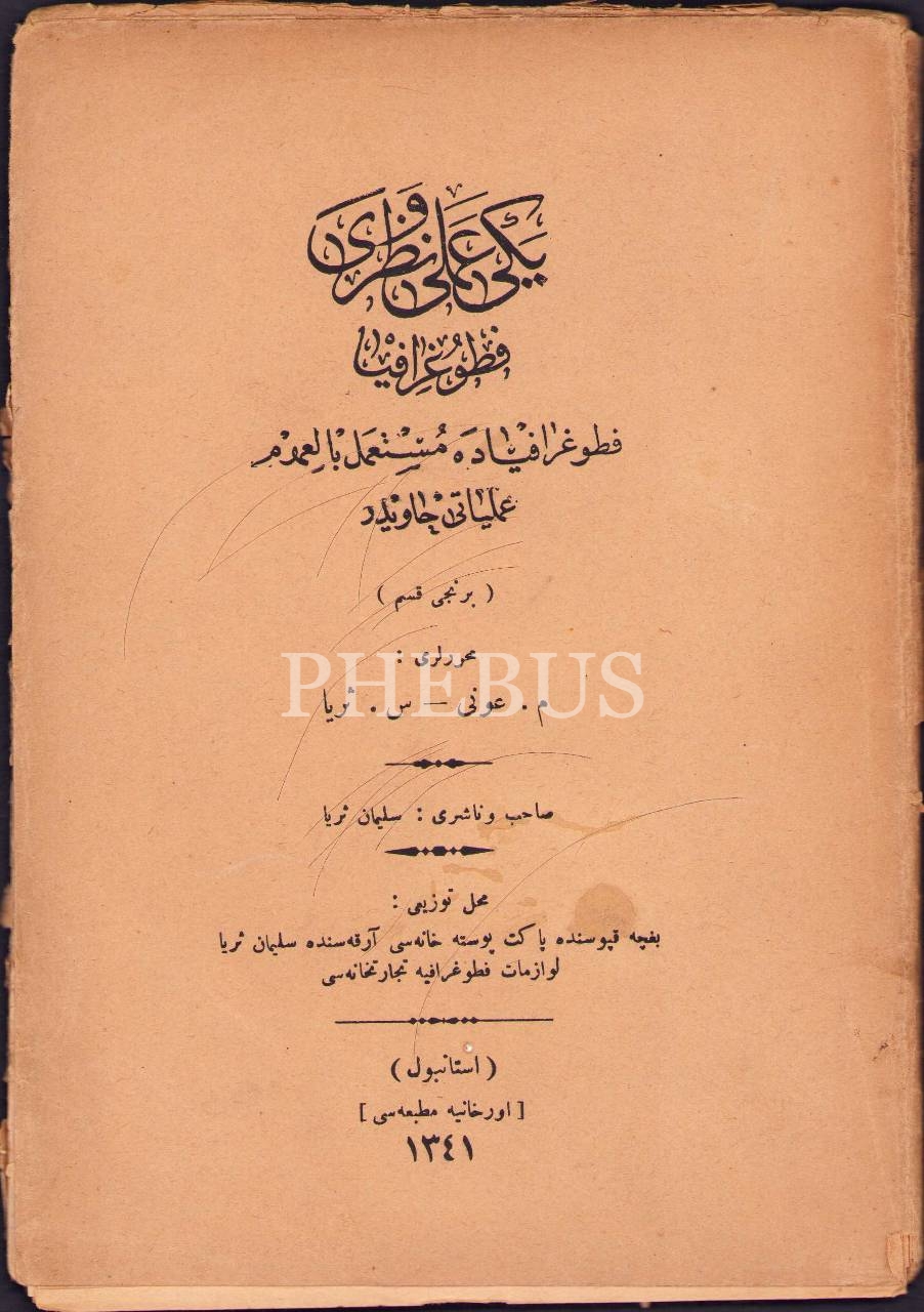 Osmanlıca Yeni Amelî ve Nazarî Fotografya, M. Avni-S. Süreyya, Orhaniye Matbaası, İstanbul 1341, 146 s., 15x20 cm, kapağı haliyle