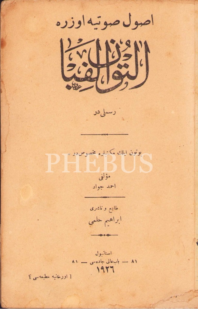Osmanlıca Usûl-i Savtiyye Üzere Altun Elifbâ, Ahmed Cevad, Orhaniye Matbaası, İstanbul 1926, 80 s., 14x20 cm