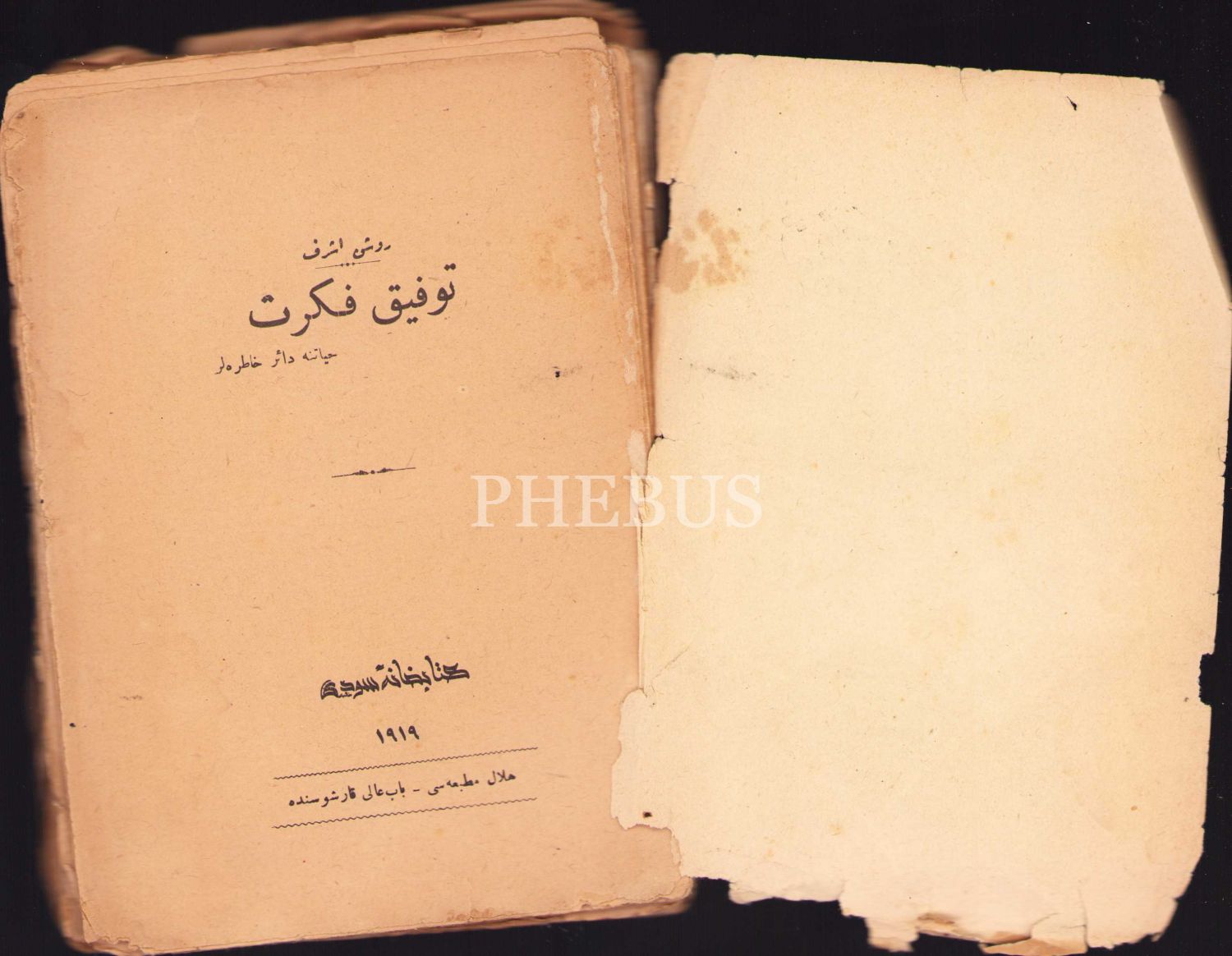 Osmanlıca Tevfik Fikret, Ruşen Eşref, Sudi Kitabhanesi, İstanbul 1919, 158 s., 13x19 cm, haliyle
