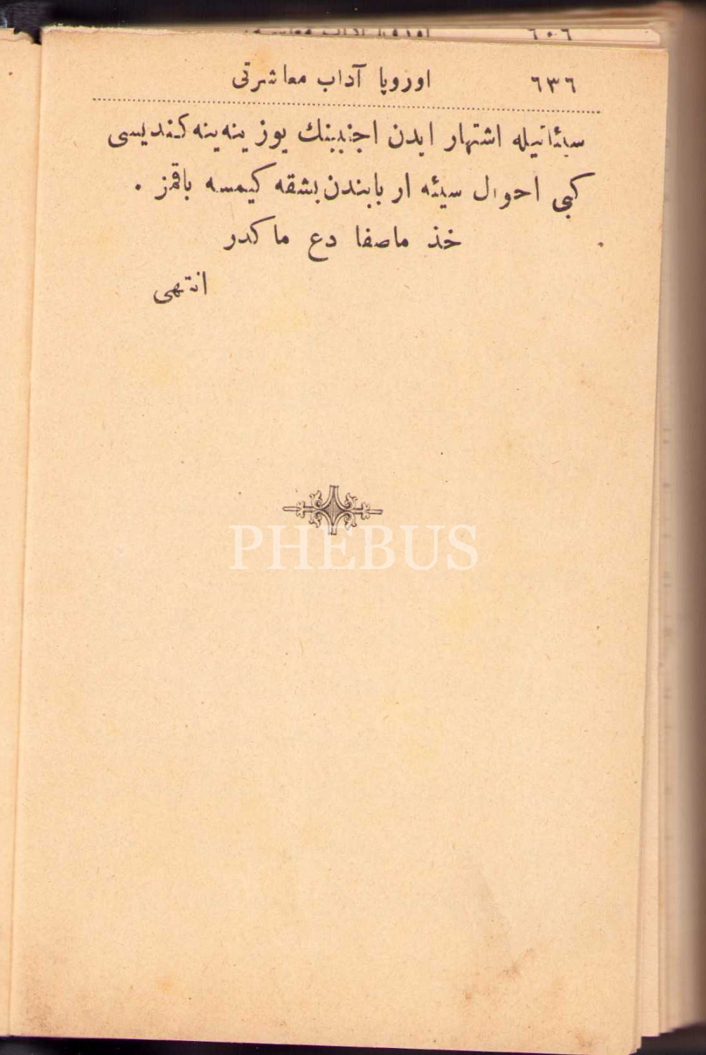Osmanlıca Avrupa Âdâb-ı Muâşereti, Ahmed Midhat, İkdam Matbaası, Dersaadet [İstanbul] 1313, 636 s., 9x14 cm