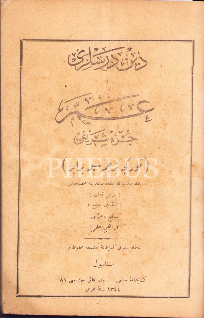 Osmanlıca Din Dersleri ve Türkçe Tercümesiyle Amme Cüzü, Hilmi Kitabhanesi, İstanbul 1344, 71 s., 14x21 cm