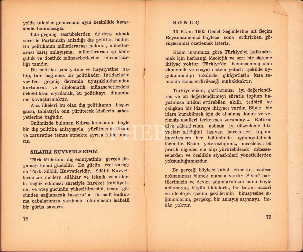 Seçim Beyannamesi - Y.T.P Yeni Türkiye Partisi 1965, 80 sayfa, 12x19 cm
