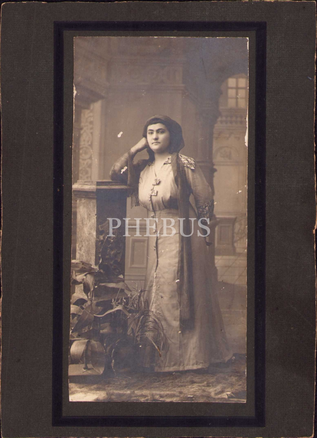 Erken dönemden bir kadının stüdyo fotoğrafı, paspartulu, 13x18 cm