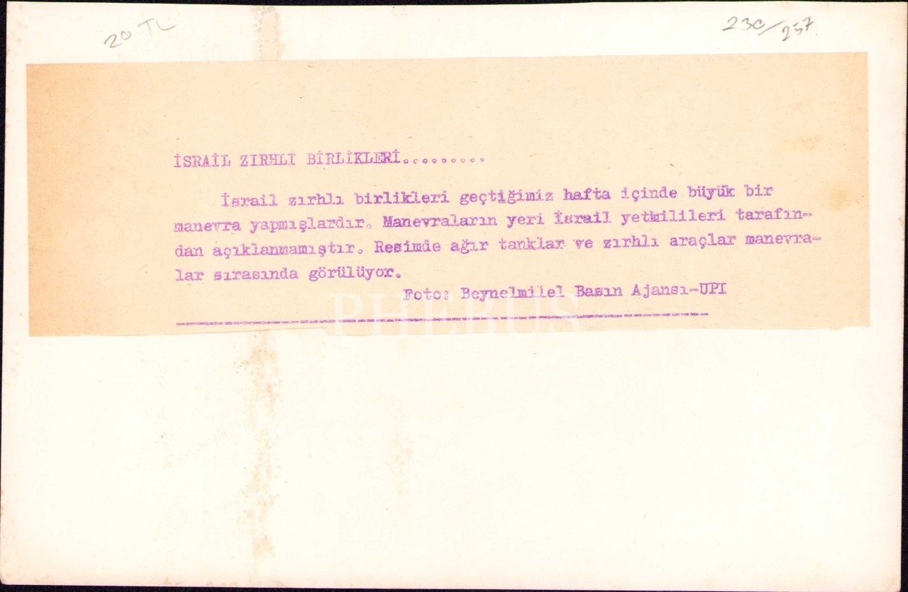 İsrail Zırhlı Birlikleri Manevra Yaparken, Foto: Beynelmilel Basın Ajansı - UPI, 24x15 cm
