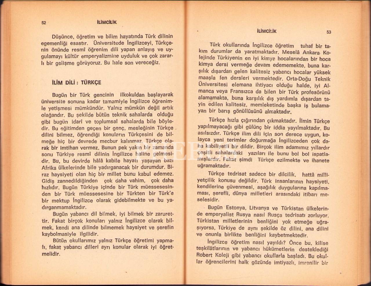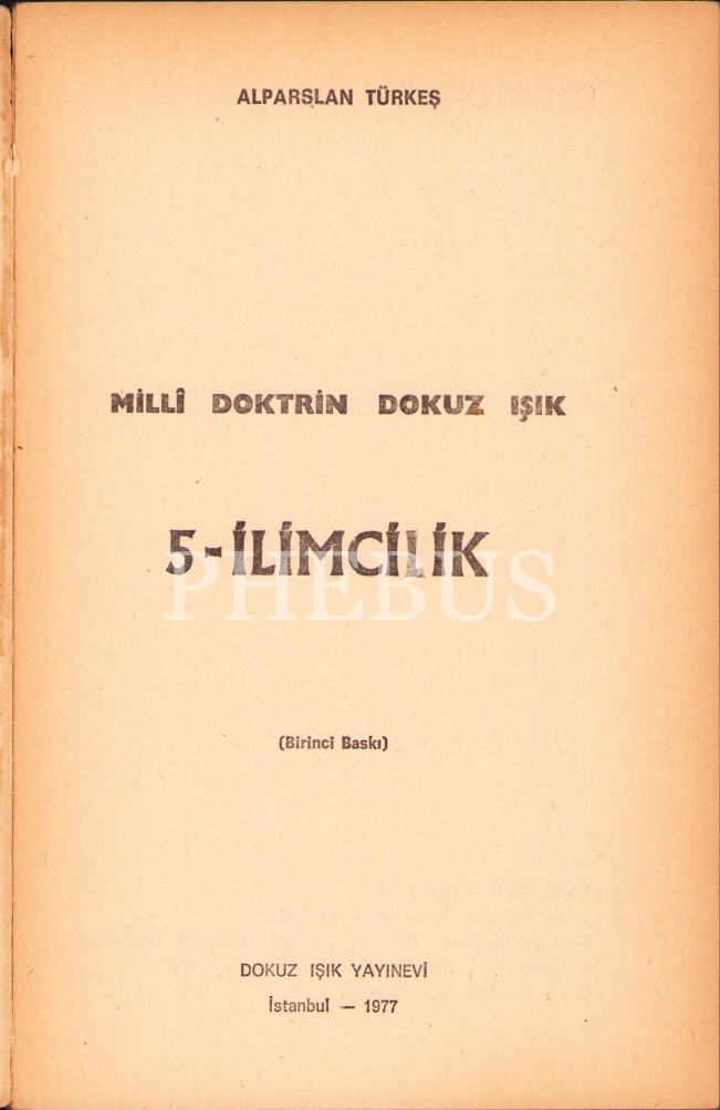 İlimcilik, Alparslan Türkeş, Işık Yayınevi, İstanbul 1977, 106 sayfa, 13x20 cm