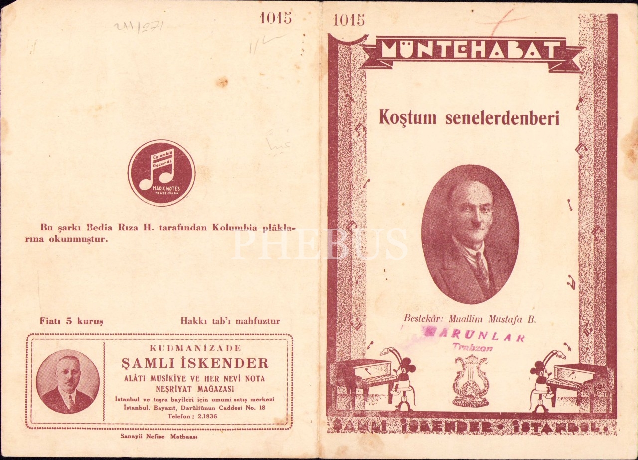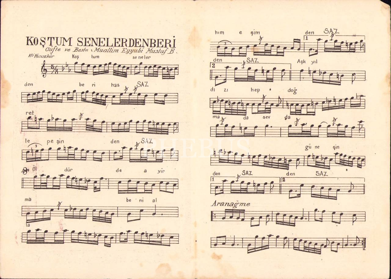Şamlı İskender, Müntehabat - Koştum Senelerdenberi, Bestekar: Muallim Mustafa B., 2 sayfa, 14x21 cm