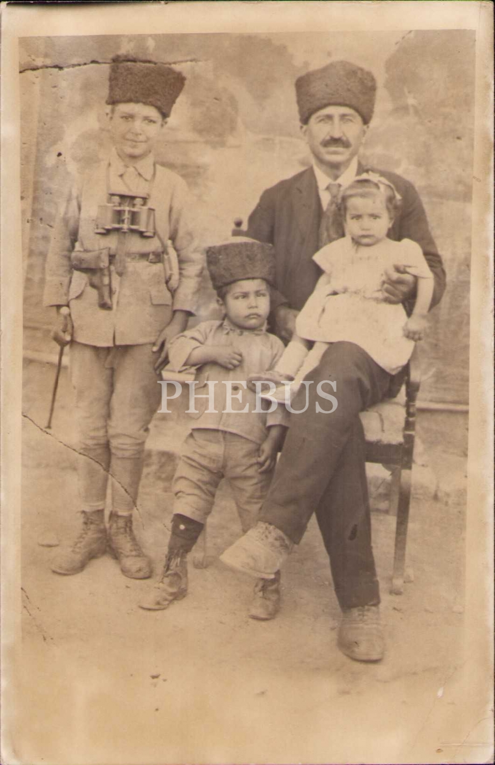 Alaminüt bir aile hatırası, kalpaklı, dürbünlü ve tabancalı çocuk detaylı
