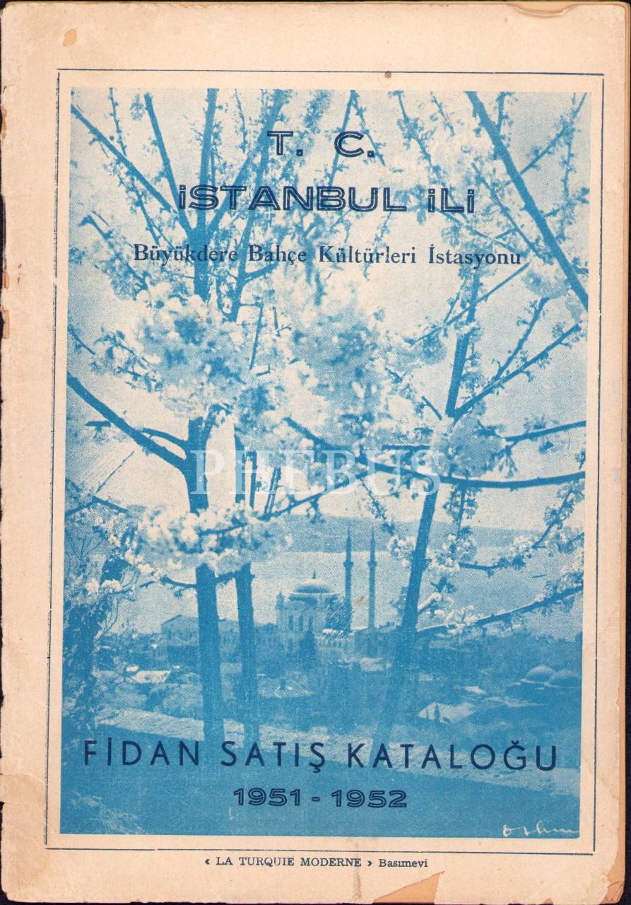 T.C. İstanbul İli Büyükdere Bahçe Kültürleri İstasyonu Fidan Satış Kataloğu 1951-1952, La Turquie Moderne Basımevi, 28 sayfa, haliyle