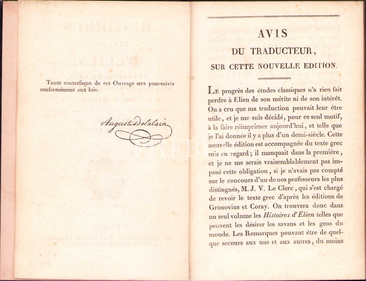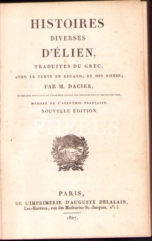 Histoires Diverses D'Elien, Par M. Dacier, Paris 1827, 524 sayfa, 13x19 cm