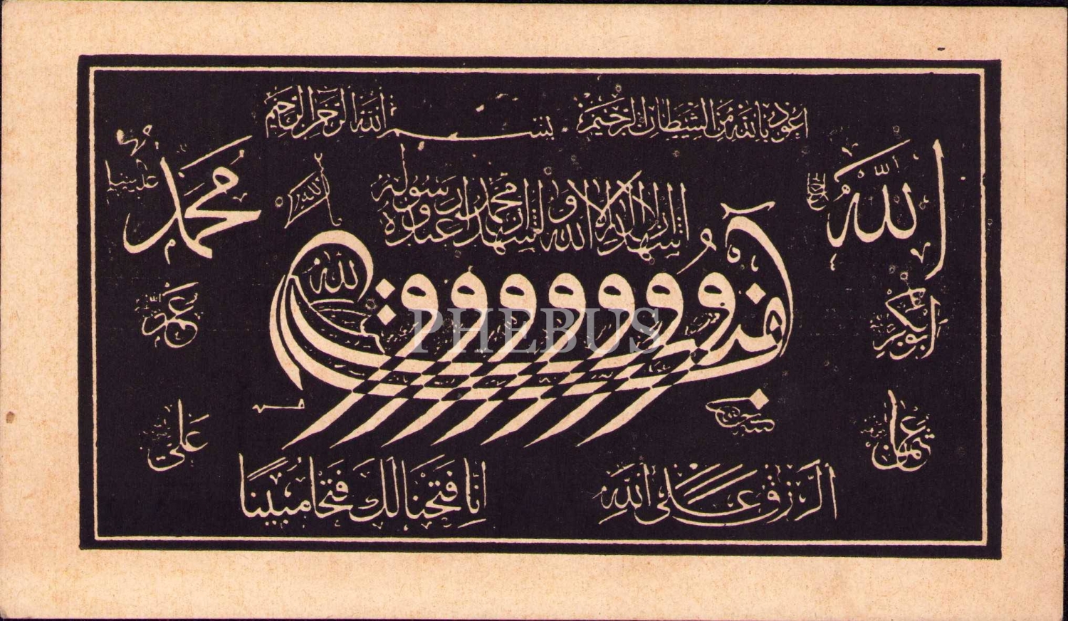 Kayık Formunda Matbu Divani Yazı ve Sülüs Yazılar, 17x10 cm