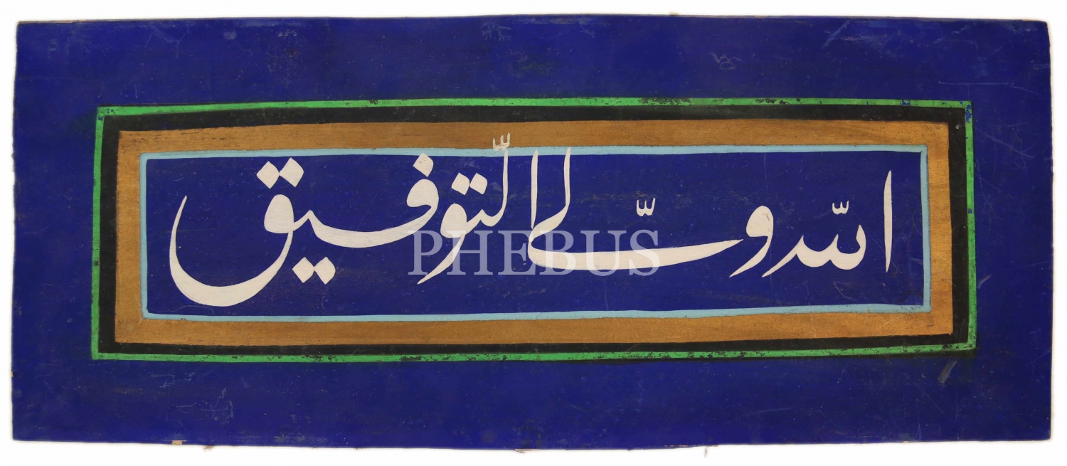 Tekke İşi Ta'lik Yazı, "Allah Veliyyü't-Tevfîk [Başarı ancak Allah'tandır]", 20x49 cm