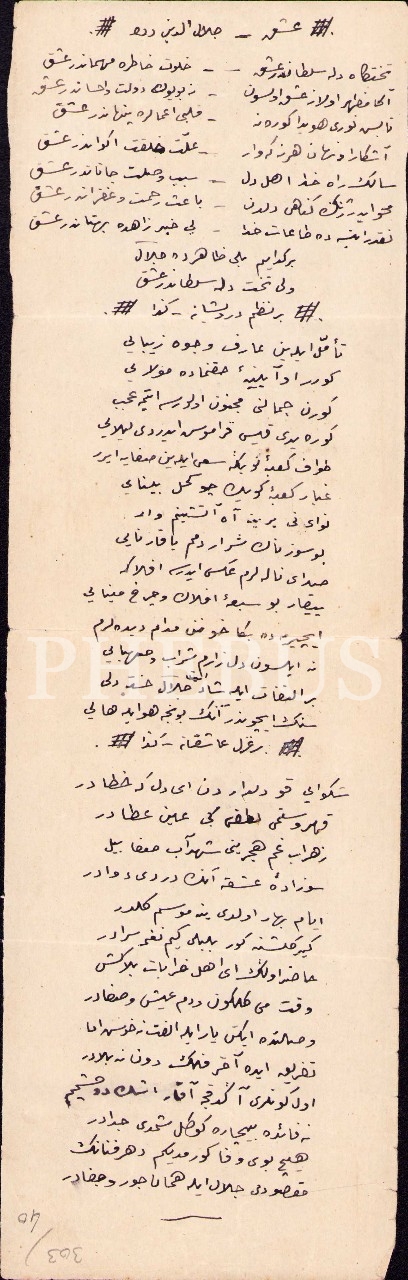 Rik'a yazı, Celâleddin Dede'ye Ait Şiirler, 10x33 cm